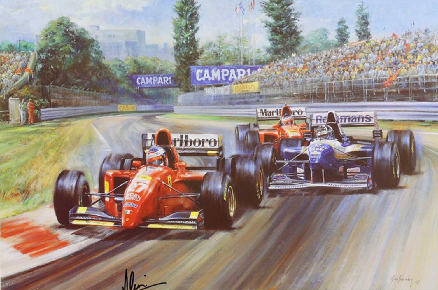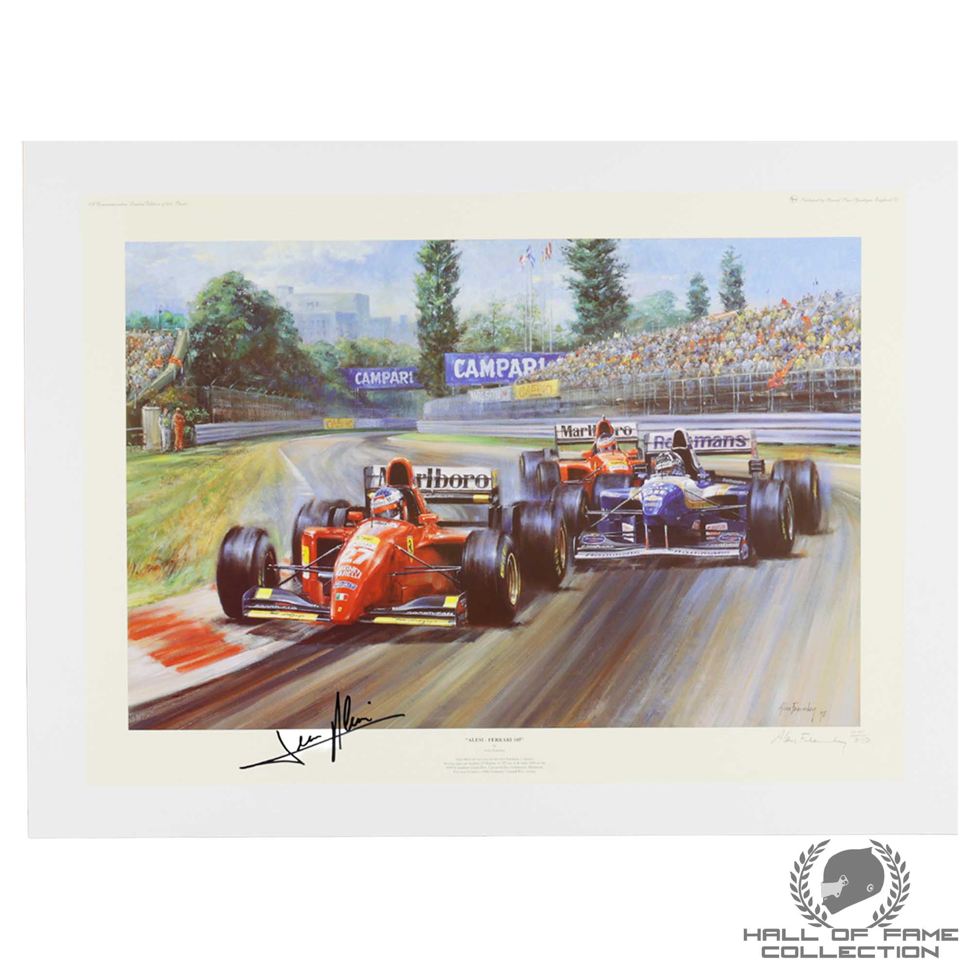 - Autographed by legendary Ferrari driver Jean Alesi and signed by artist. We have been told that Alesi only signed a small number of these prints.