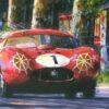 The Vanwalls of Stirling Moss and Tony Brooks are shown leading Juan Fangio at the 1957 Italian Grand Prix at Monza. Moss went on to victory and Brooks posted the fastest lap. This print has long been sold out in the primary market. Autographed by Stirling Moss, Tony Brooks, Frank Costin, and Juan Manuel Fangio. Certificate of authenticity provided with print.
