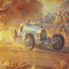 This limited edition of 500 signed and numbered prints was produced and published from an original painting by famed English motorsports artist Simon Ward and commissioned by Freck’s Auto Art, Inc.